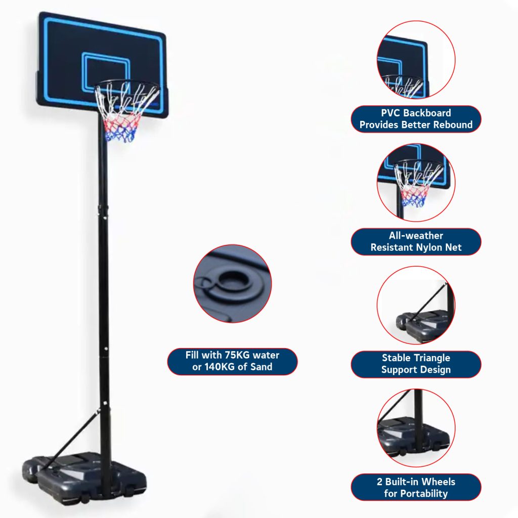 Adjustable 7.5ft to 10ft Basketball Hoop (44 Inch Backboard)