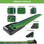 YALLA HomeGym Portable 3 Meters Golf Putting Mat, Indoor / Outdoor Golf Putter, Auto Ball Return System