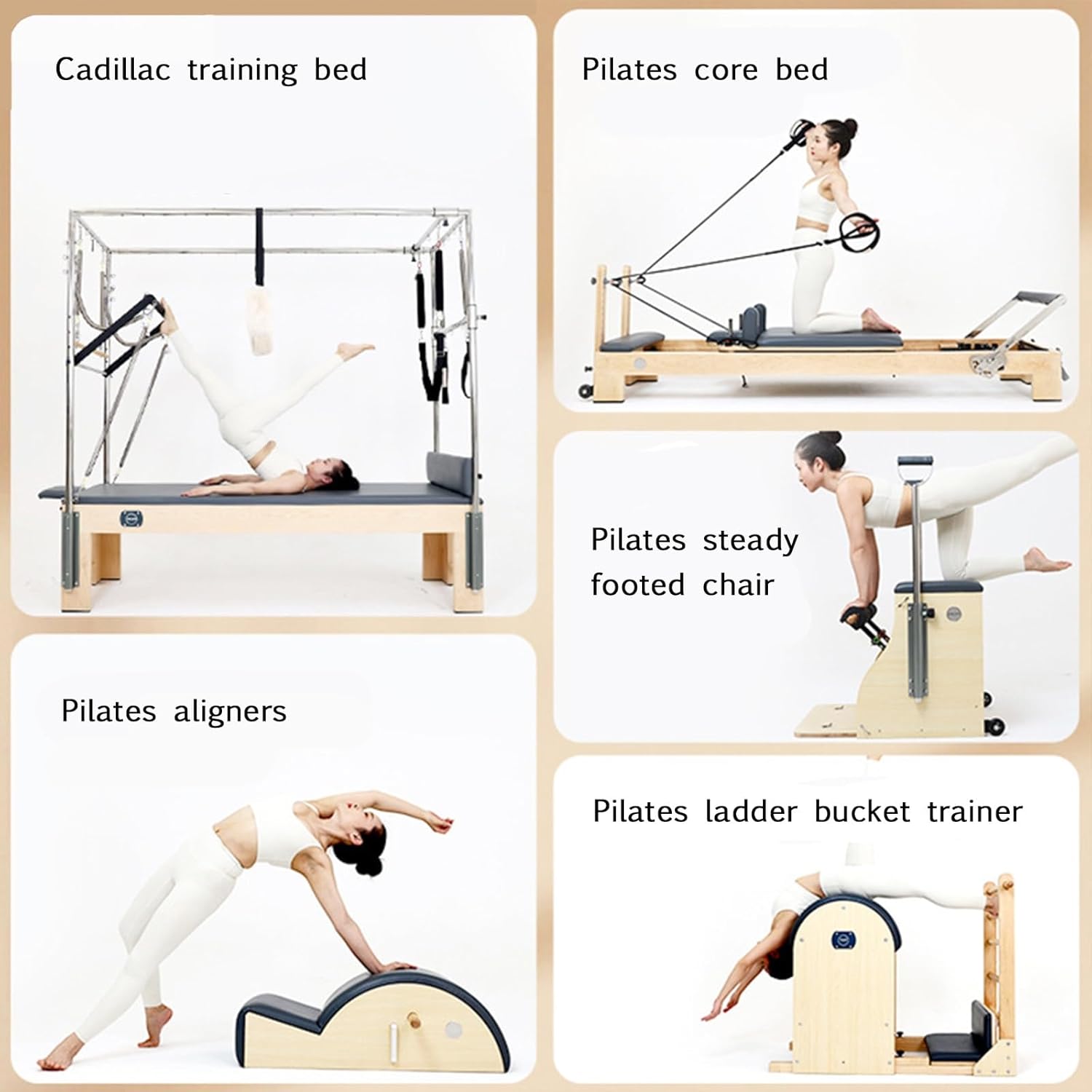 This complete set includes five types of professional Pilates equipment: