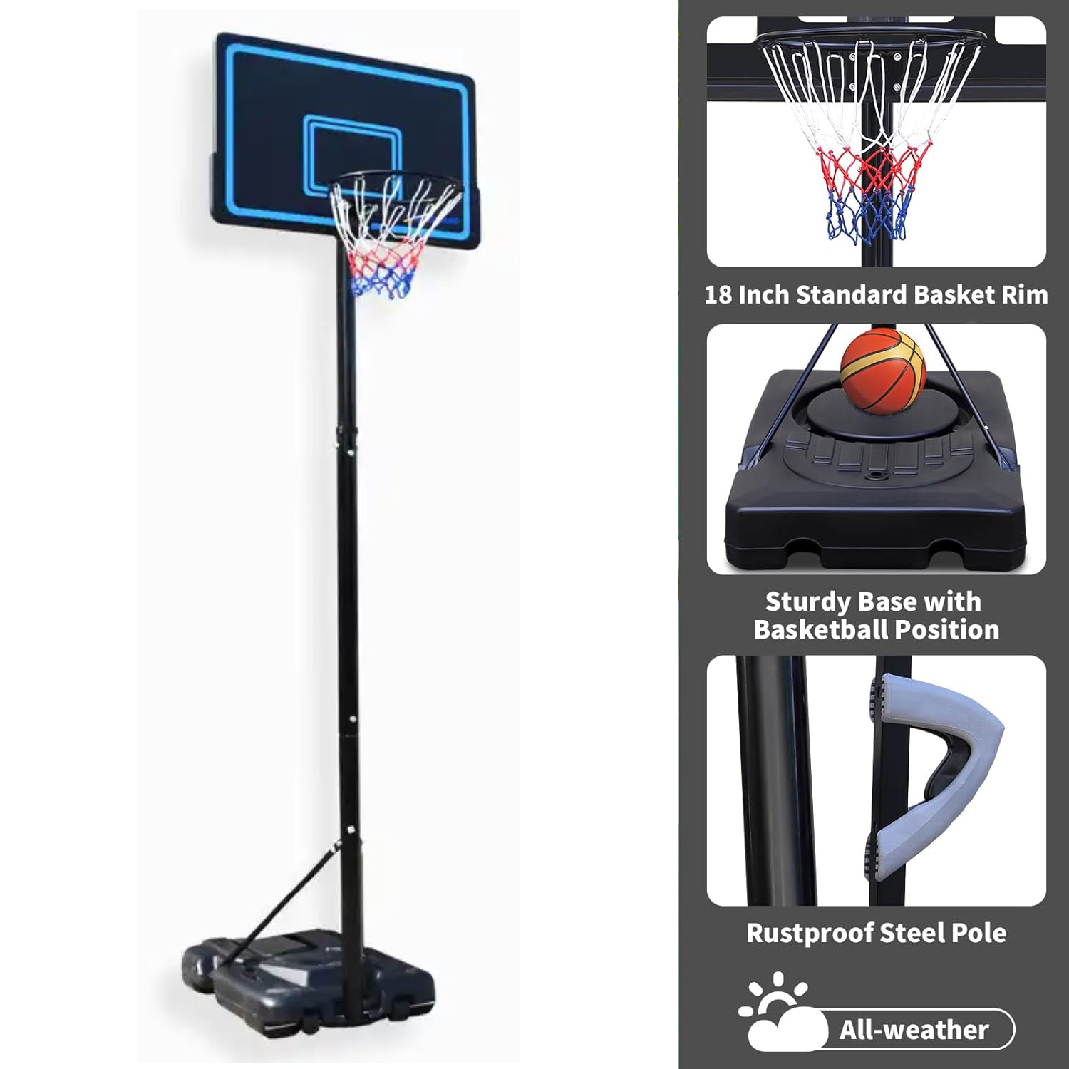 This adjustable basketball hoop features a height range from 7.5ft to 10ft, a durable 44” polycarbonate backboard, and a stable wheeled base for easy movement. With an all-weather net and steel rim, it’s perfect for family fun, fitness, and outdoor play.