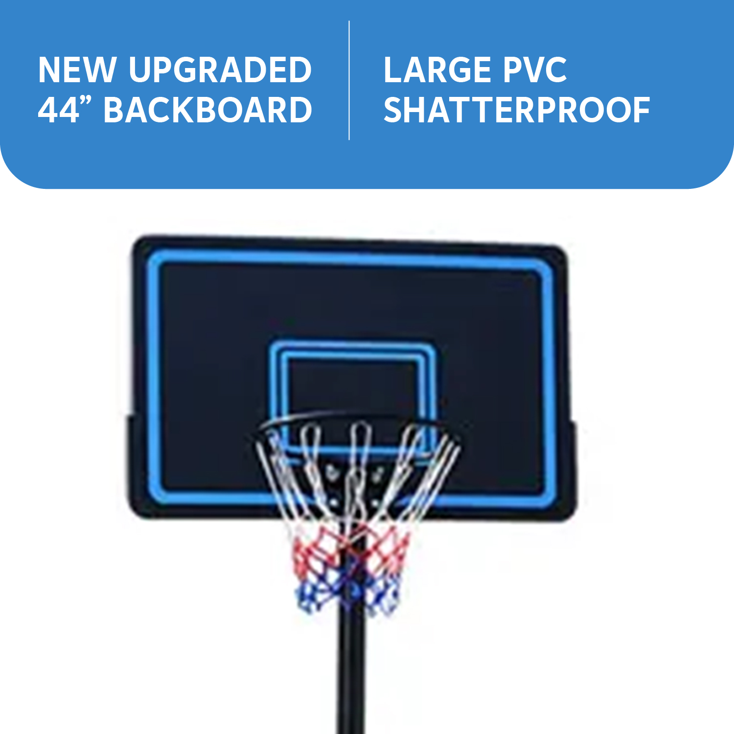 • 44-Inch Polycarbonate Backboard – Durable and shatterproof for regular use.