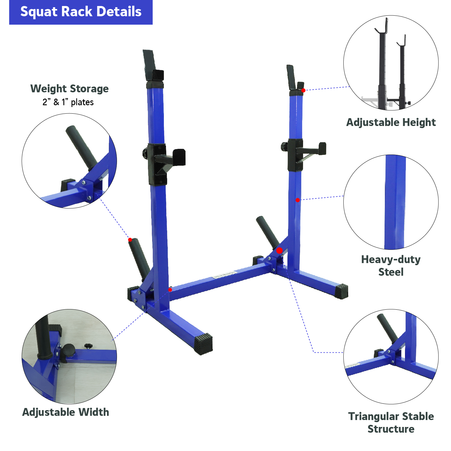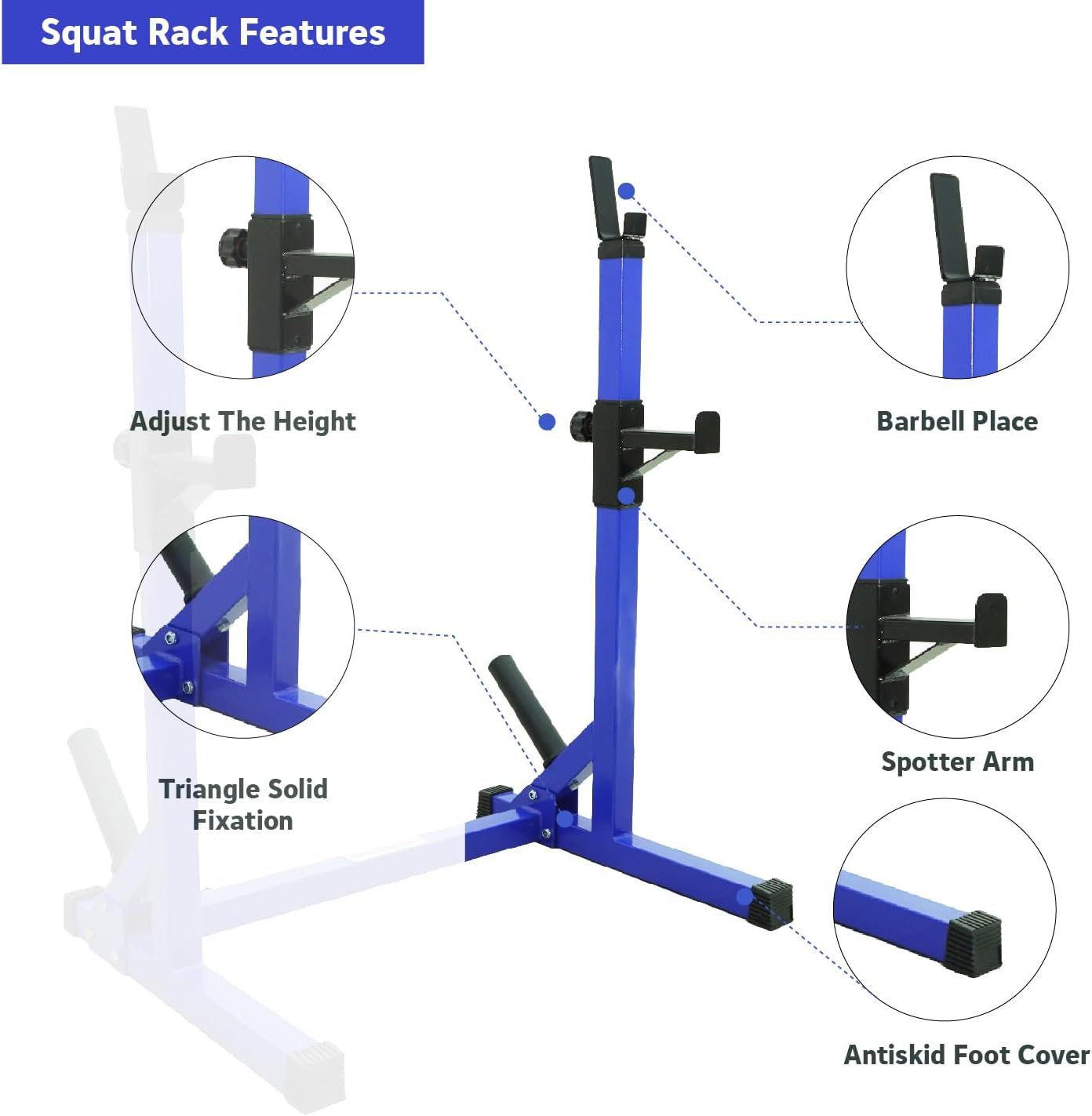 YALLA HomeGym Commercial Home Adjustable Heavy-Duty Squat Rack Stand, Bench Press Rack, BLUE