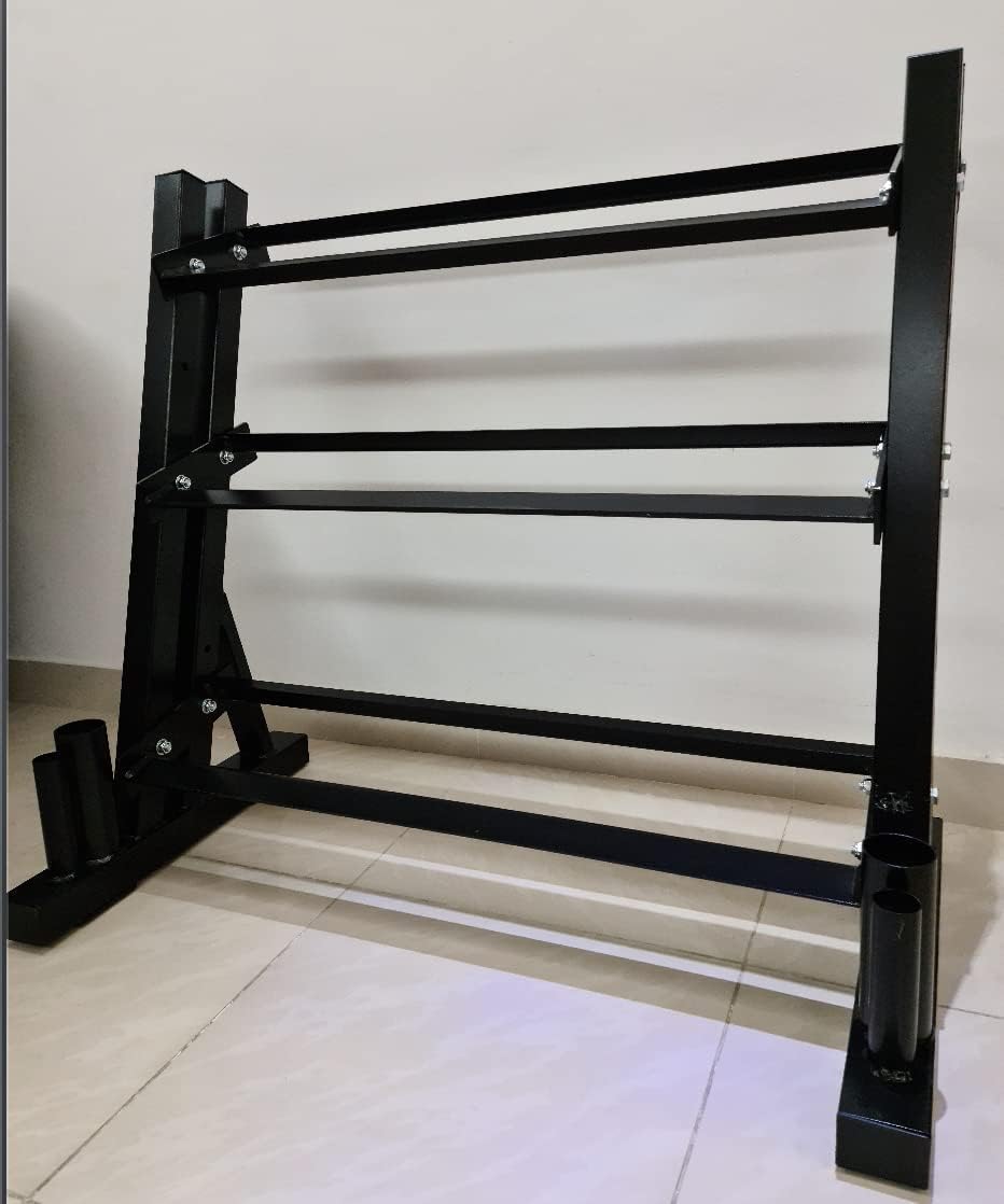 Achieve A Fitter and Healthier Body Right in The Comforts of Your Home with The Combo Weights Storage Rack by YALLA HomeGym Save More and Make Your Home Your New Favorite Place to Work Out with This Premium Gym Organizer That’s Designed to Help You Have More Efficient Bodybuilding Sessions by Giving You A Special Storage Space for Your Fitness Equipment! Racking Your Weights Is an Important Part of Any Workout, Even When the Cleanup Afterward Proves to Be A Challenge! Store Everything in A Single Place with The YALLA HomeGym Combination Weight Storage Rack. Made from Premium Steel Tubes, This Equipment Stand Exhibits A High-Quality Structure That Combines Functionality and Practical Design, Creating A Storage Rack That Can Withstand Daily, Heavy Use. This Three-Layer Rack with Four Easy Access Storage Posts Offers A Multifunctional Storage Space for Your Dumbbell & Barbell . Reinforced with Premium Coating.