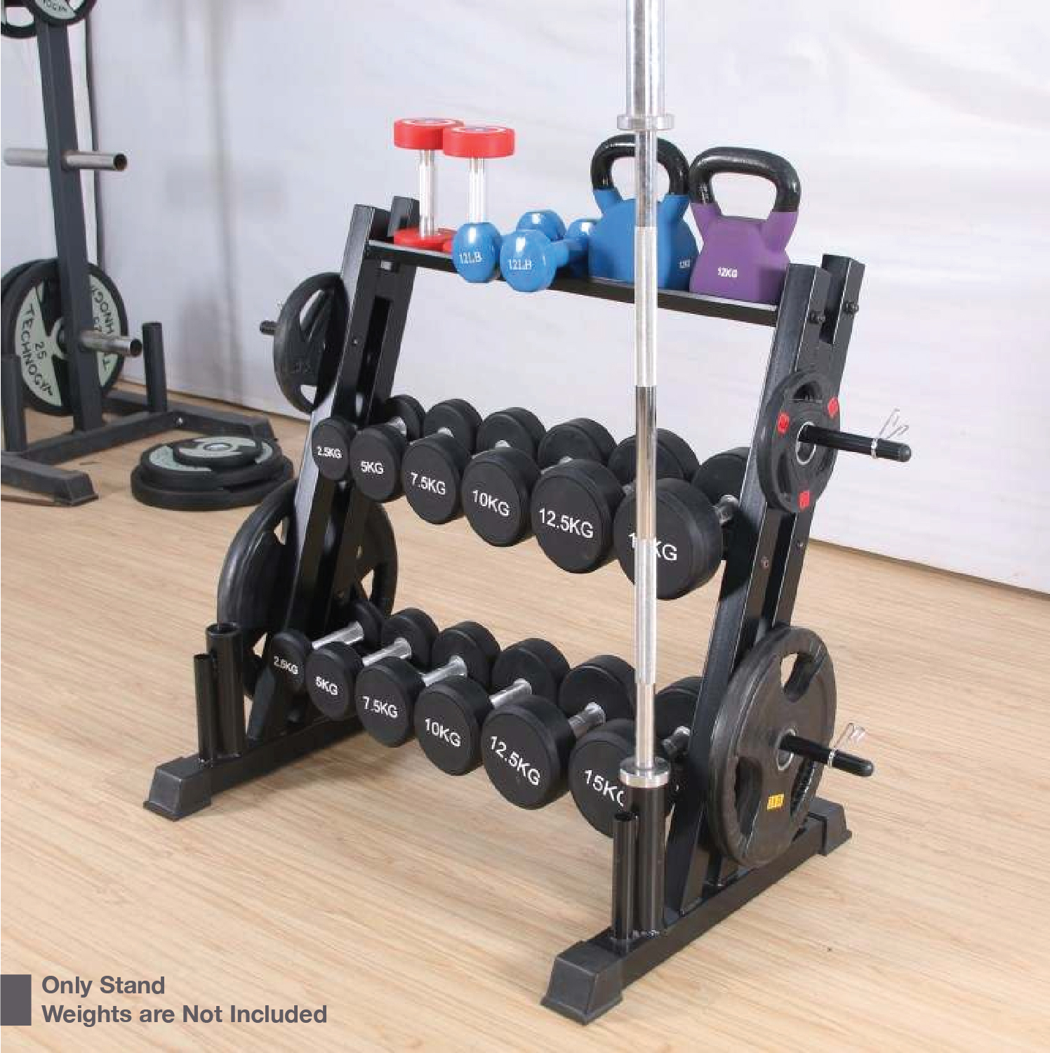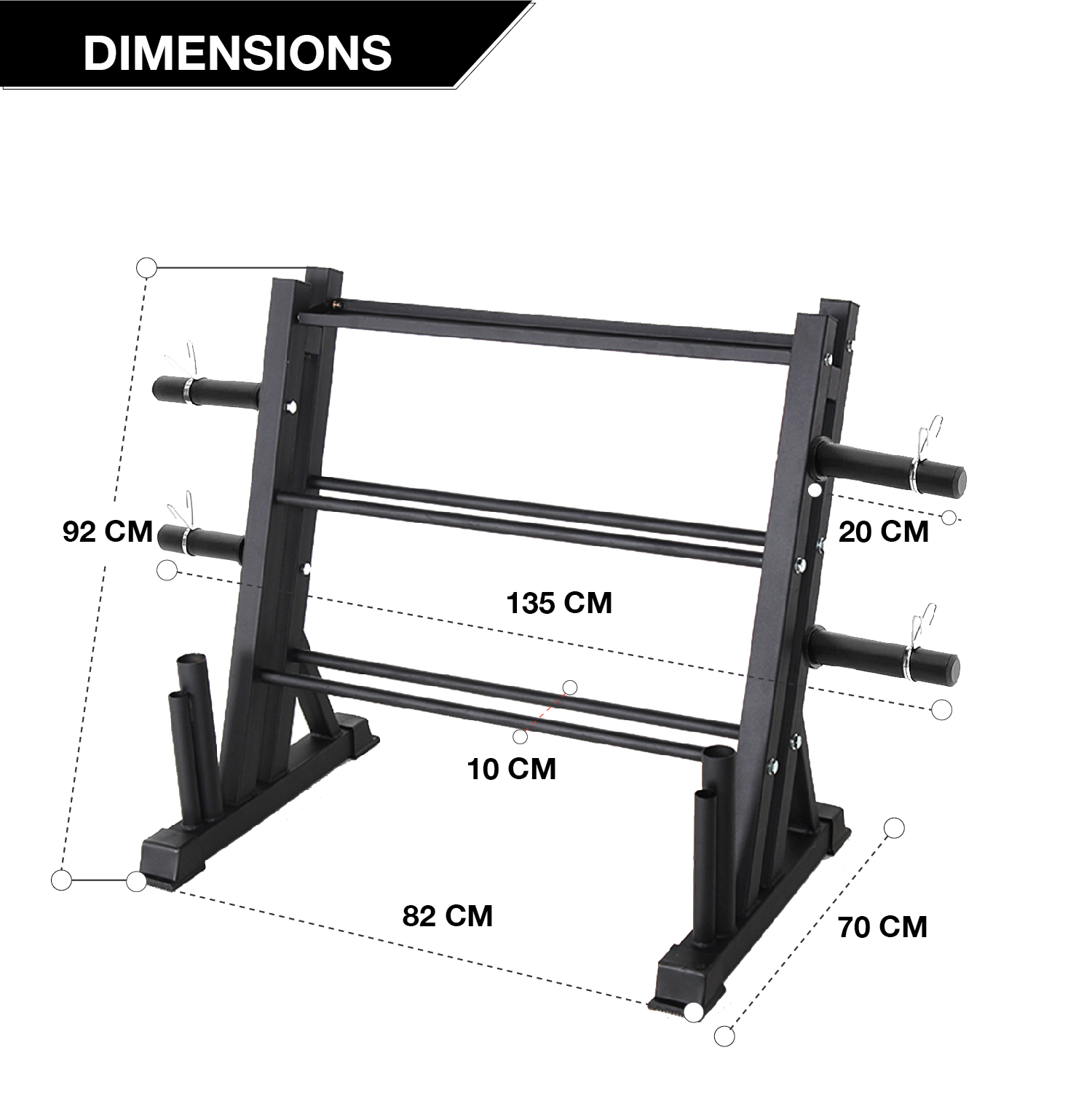 - 3-in-1 Storage Solution – Holds dumbbells, kettlebells, and Olympic weight plates